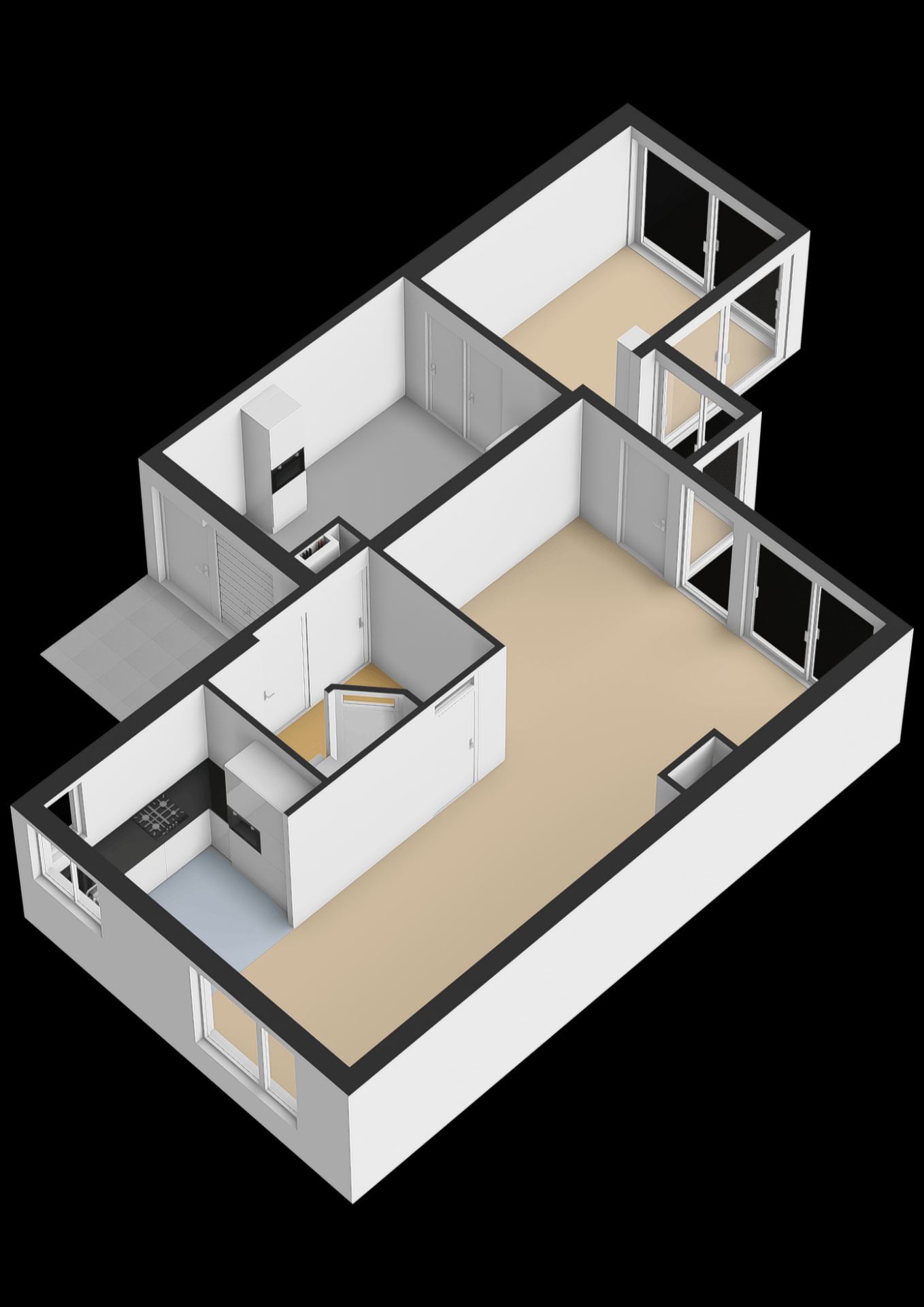 - Gedeeltelijk kunststof kozijnen met dubbel glas;