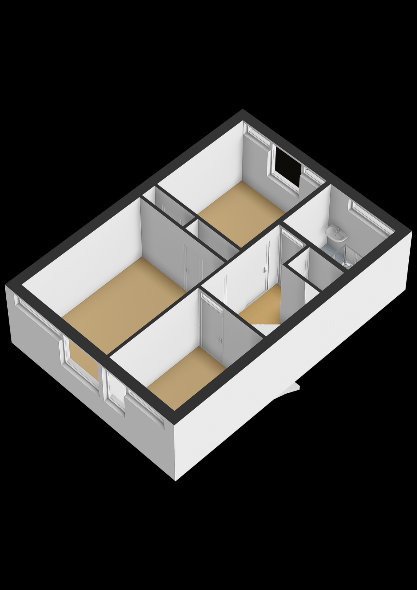 Het huis telt in totaal drie verdiepingen en vijf kamers. Op de eerste verdieping zijn drie slaapkamers en de badkamer te vinden. Deze kamers verschillen in formaat, maar zijn allemaal voorzien van daglicht en goed bruikbaar als slaap-, werk- of logeerkamer. De badkamer is eenvoudig maar functioneel. Via een vaste trap kom je op de tweede verdieping, waar je een vierde slaapkamer vindt, met dakraam en bergruimte achter knieschotten. Deze verdieping leent zich ook uitstekend als thuiskantoor of hobbyruimte.
