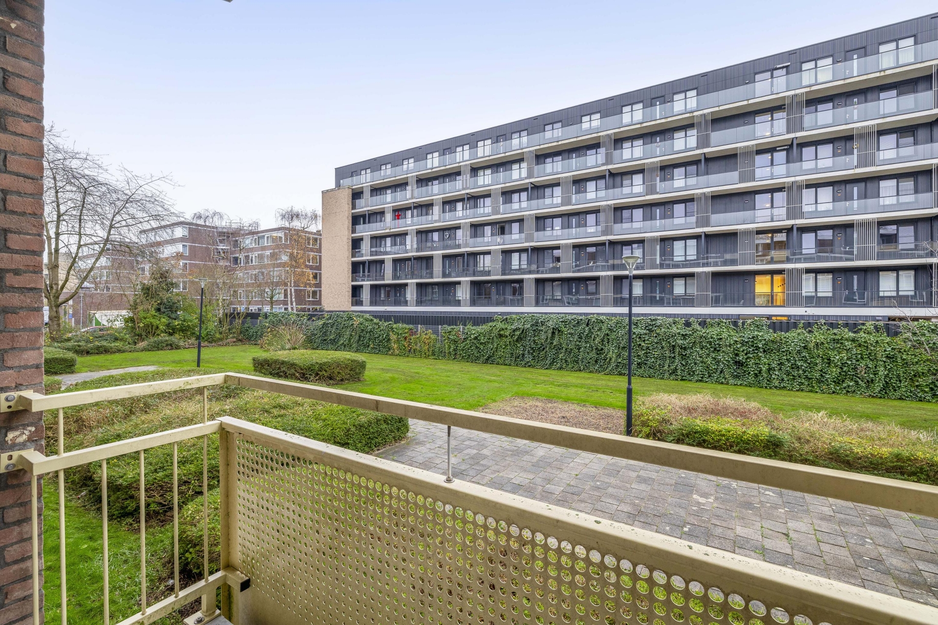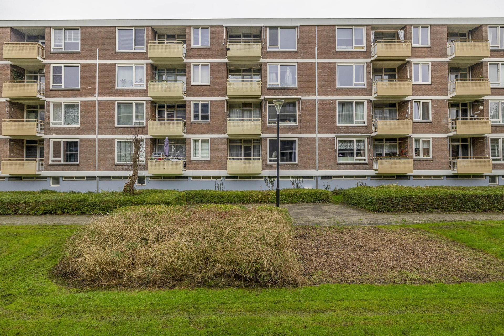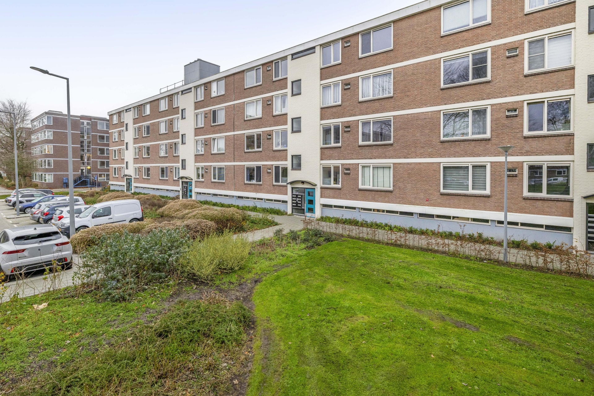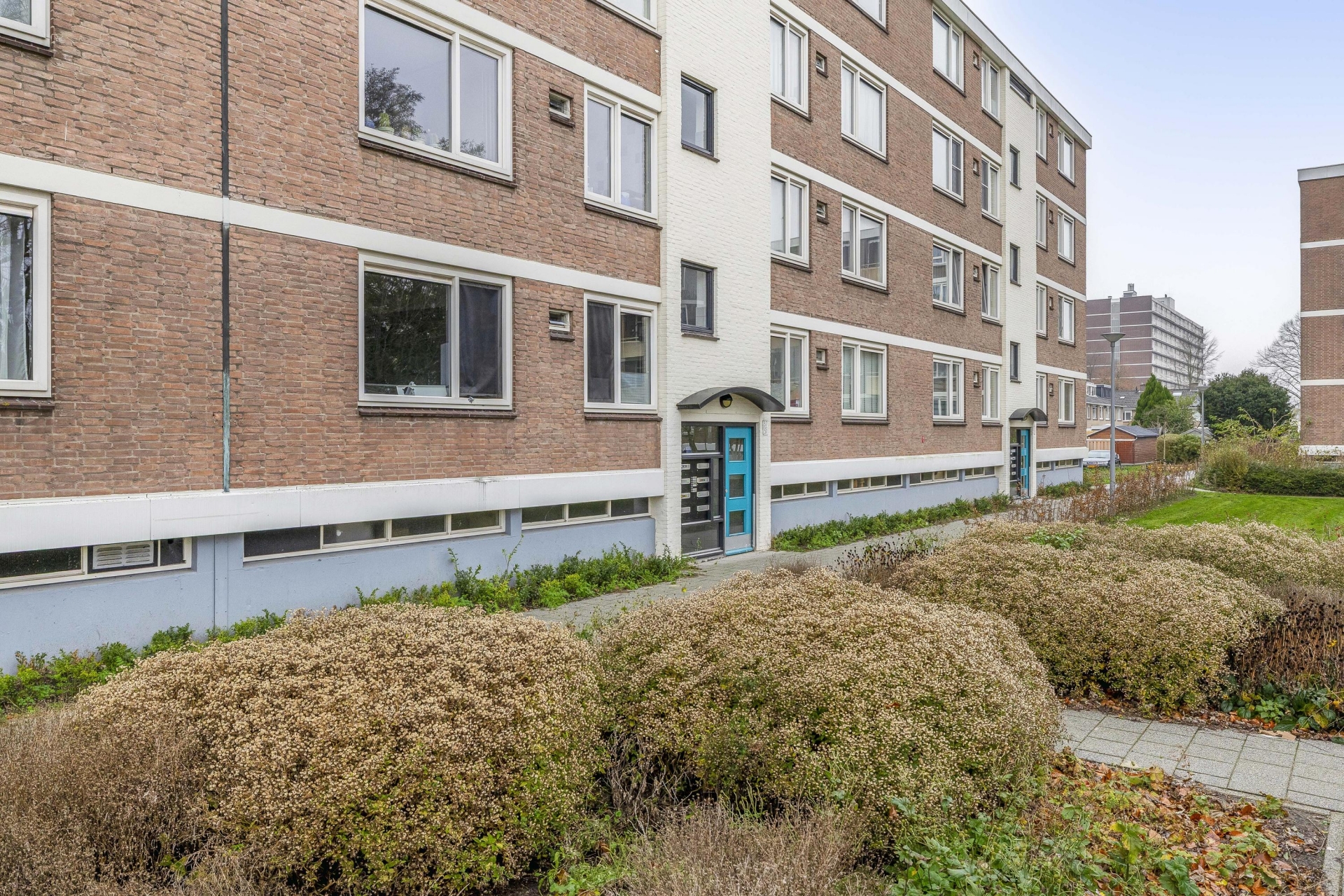 Het appartement maakt deel uit van een verzorgd appartementencomplex met een actieve VvE. De gemeenschappelijke entree is netjes onderhouden en er is een afgesloten portiek. Rondom het gebouw ligt een groene zone met grasvelden en beplanting – een fijne, open sfeer waar je niet direct tegen andere gevels aankijkt. Ook prettig: je woont hier in een wijk waar bewoners oog hebben voor hun omgeving en het straatbeeld verzorgd is.