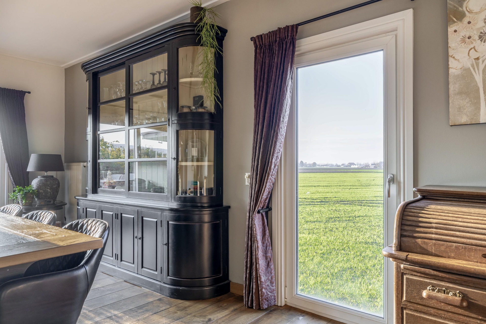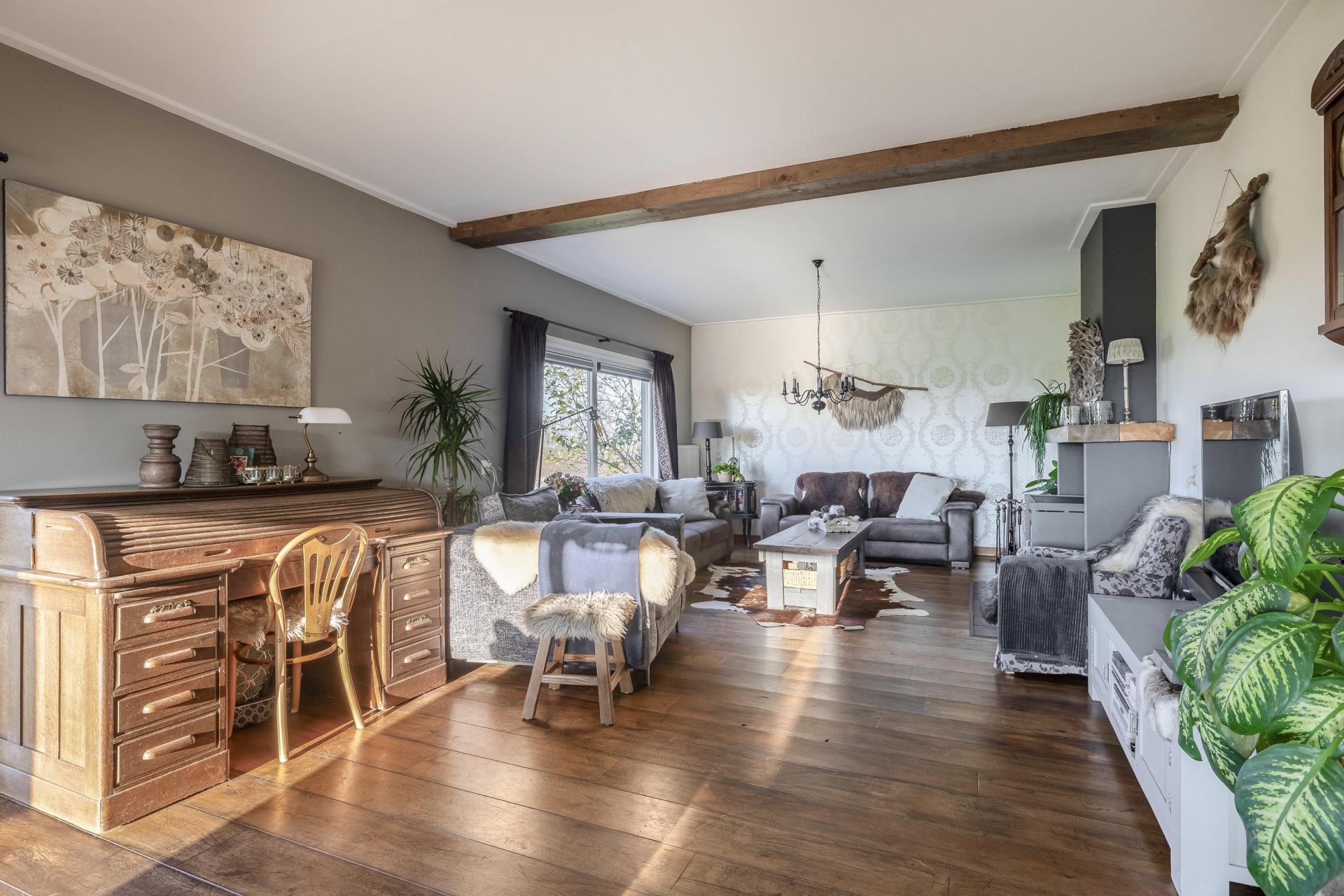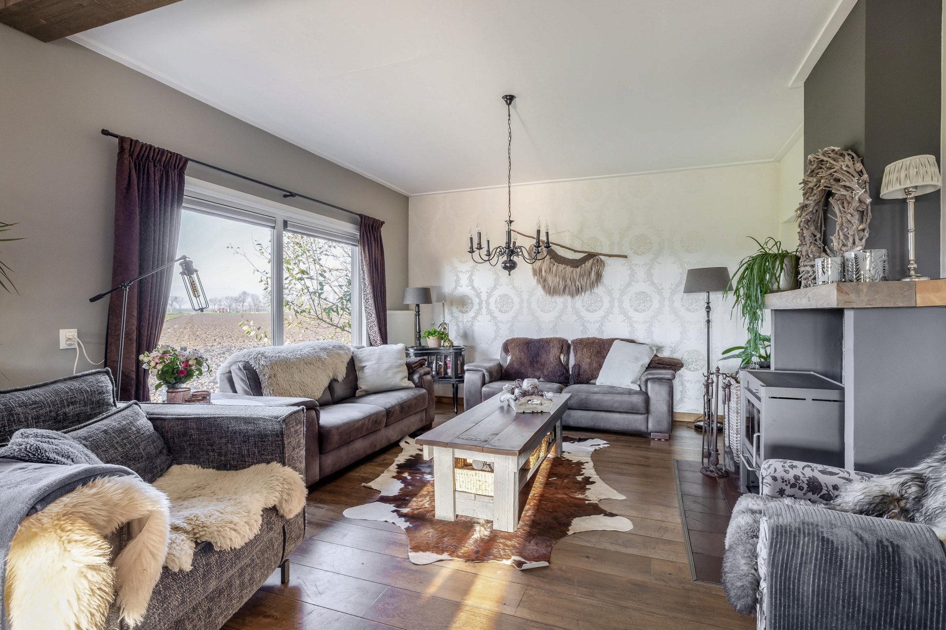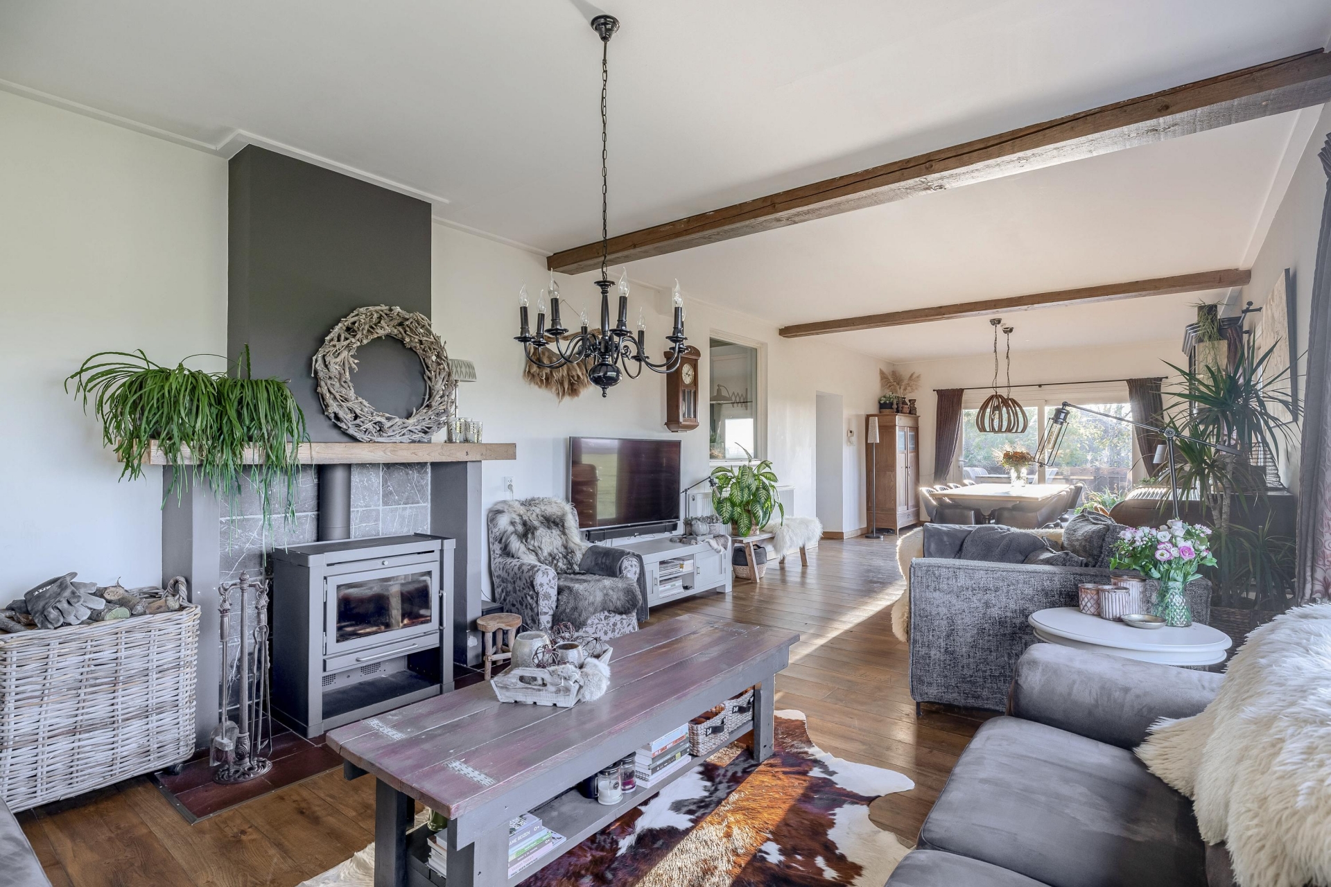 Bij binnenkomst valt direct de warme sfeer op. De gezellige woonkamer is voorzien van houten vloeren, een houtkachel en grote ramen die uitkijken over de landerijen. Aan de achterzijde is de woonkamer uitgebouwd; deze uitbreiding is direct op fundering geplaatst met oog op een toekomstige opbouw, waardoor er in de toekomst eenvoudig extra woonruimte op de verdieping kan worden gerealiseerd. Aan de rechterzijde vind je een royale zithoek, terwijl links ruimte is voor een grote eettafel met toegang tot de veranda. De afgesloten keuken heeft een landelijke uitstraling, veel opbergruimte en een groot fornuis met oven. Aangrenzend bevindt zich de praktische bijkeuken met ruimte voor wasmachine, voorraad en extra bergruimte. Daarnaast zijn er een aparte entreehal en toiletruimte aanwezig. Op de begane grond ligt tevens een ruime slaapkamer, ideaal voor gelijkvloers wonen of als werk-/praktijkruimte. De eerste verdieping telt twee fijne slaapkamers met vaste kastruimte. De badkamer is ruim en licht, voorzien van een ligbad, aparte douche, wastafel en tweede toilet. Een bergvliering biedt extra opbergruimte.