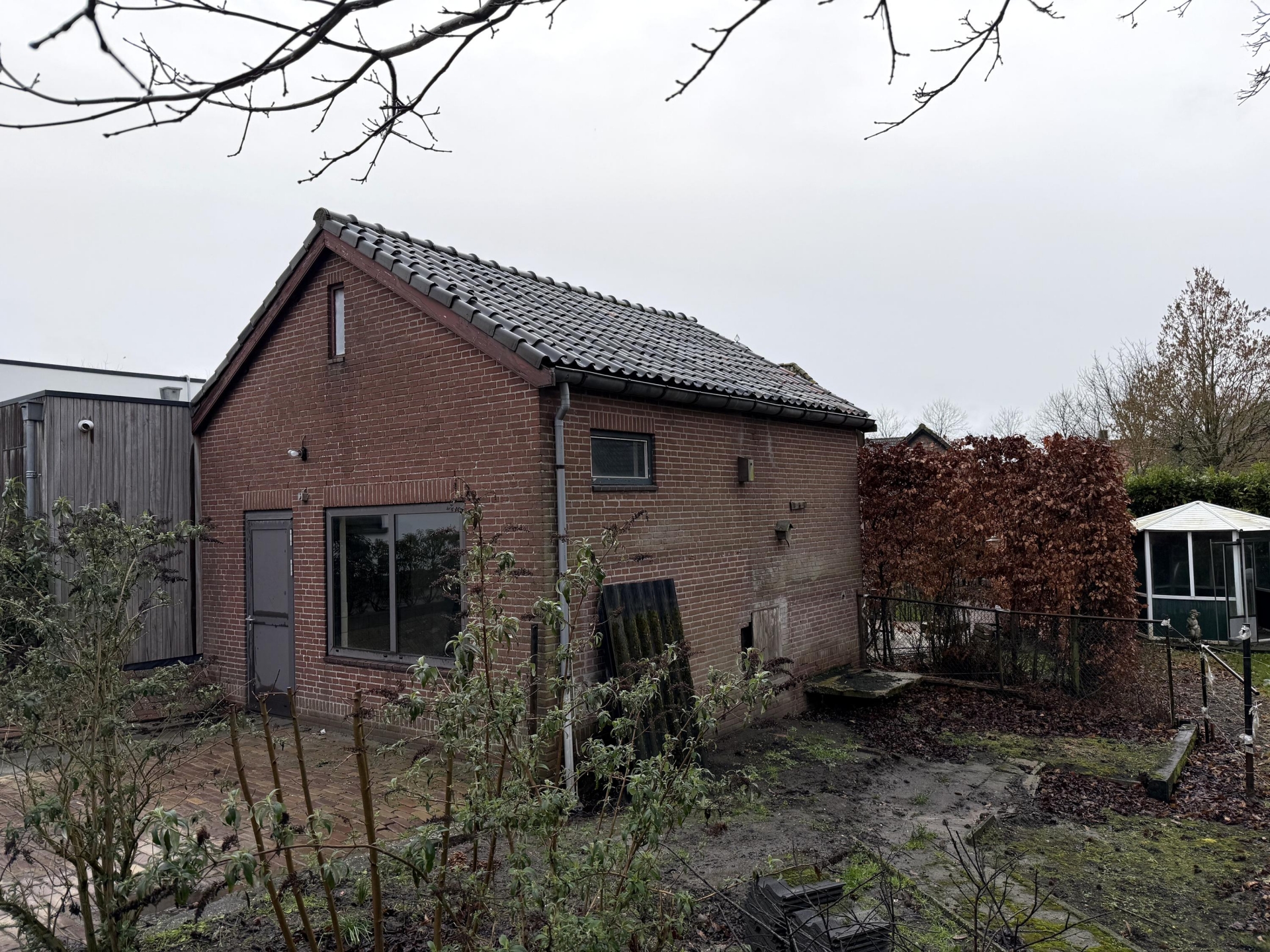 Het dak heeft in het verleden een lekkage gehad. De dakpannen zijn hersteld en het dak is op dit moment waterdicht, maar toekomstig onderhoud moet worden meegenomen in de plannen. Voor een handige koper of investeerder biedt dat ruimte om het gebouw verder te optimaliseren.