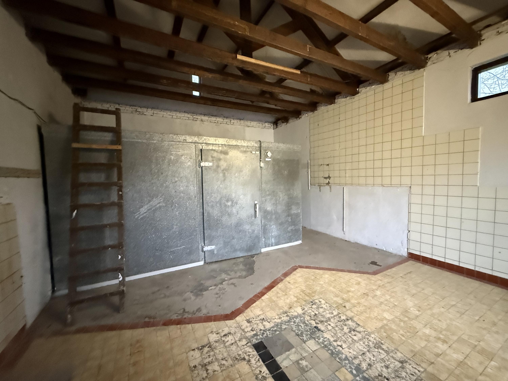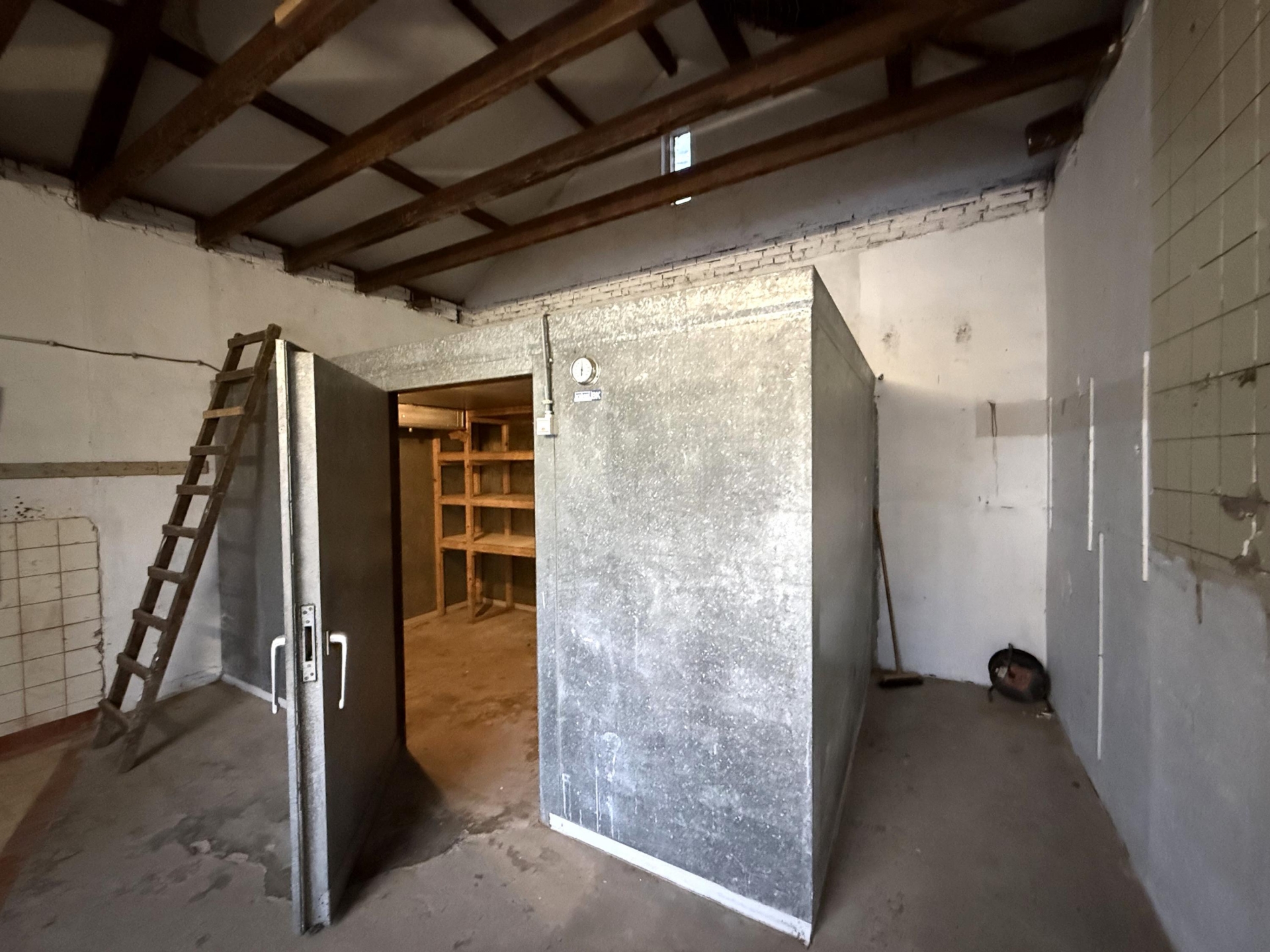 Het gebouw heeft een gebruiksoppervlakte van circa 31 m² en is gebouwd in 1958. Binnen tref je een open ruimte met zichtbare kapconstructie, wat direct een ruimtelijk gevoel geeft. De huidige indeling is eenvoudig en functioneel, met nog een oude koelcel aanwezig, deze wordt gedemonteerd.
