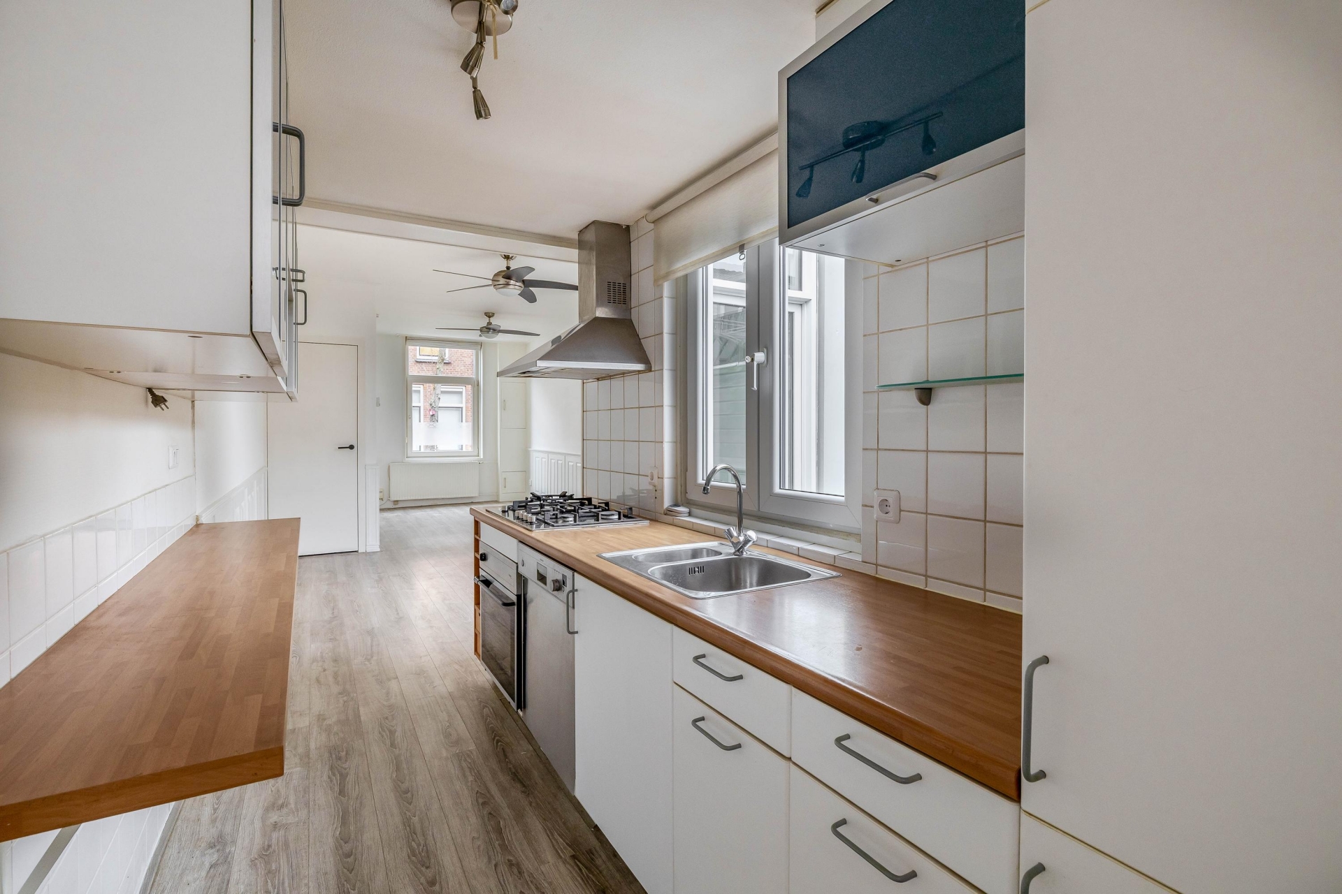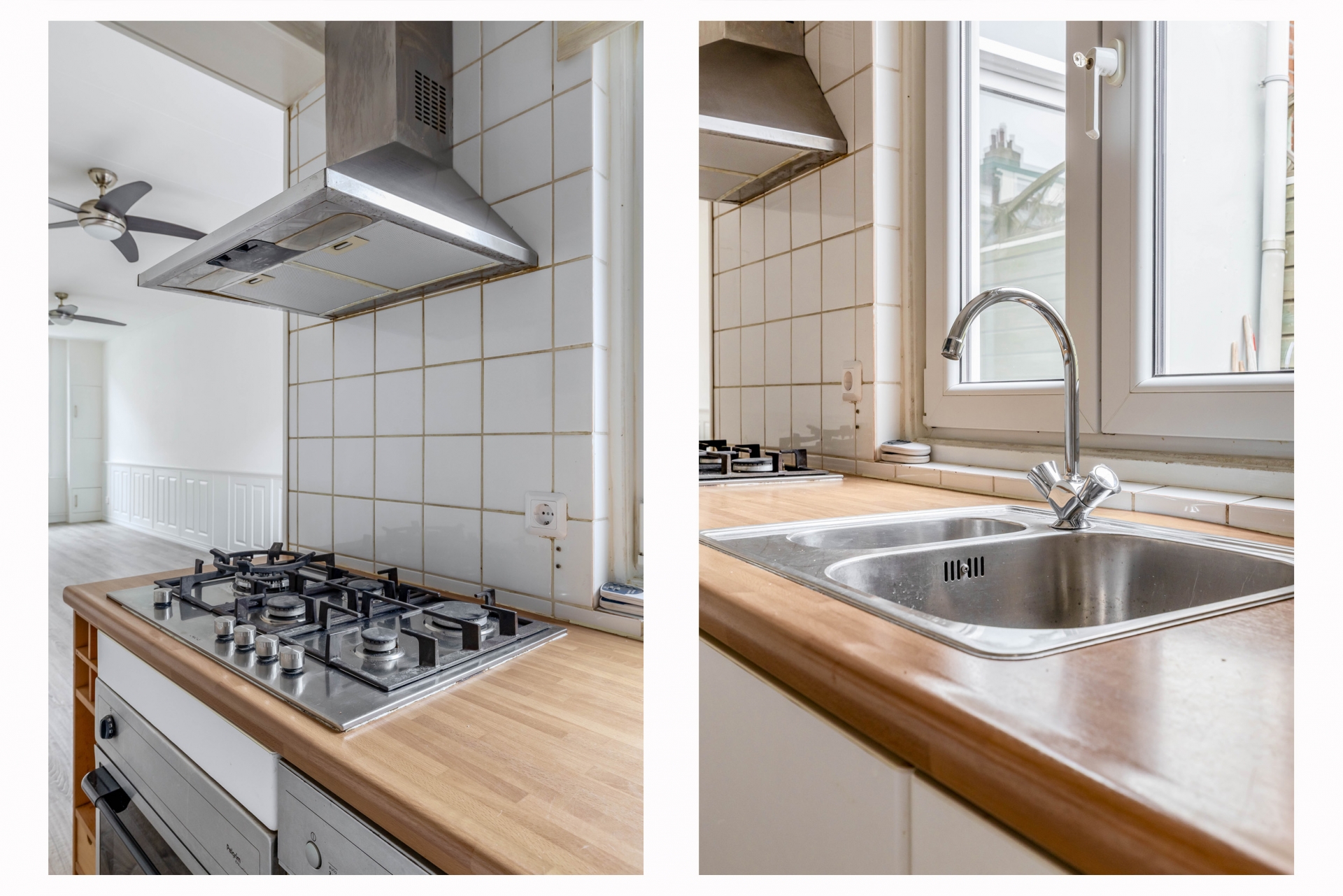 Aan de achterzijde van het huis bevindt zich de verzorgde keuken. Deze is uitgevoerd met een 5-pits gaskookplaat, RVS afzuigkap, combi-oven, koel-/vriescombinatie en diverse onder- en bovenkasten. Alles wat je nodig hebt om uitgebreid te koken of gewoon snel iets klaar te maken na een werkdag.