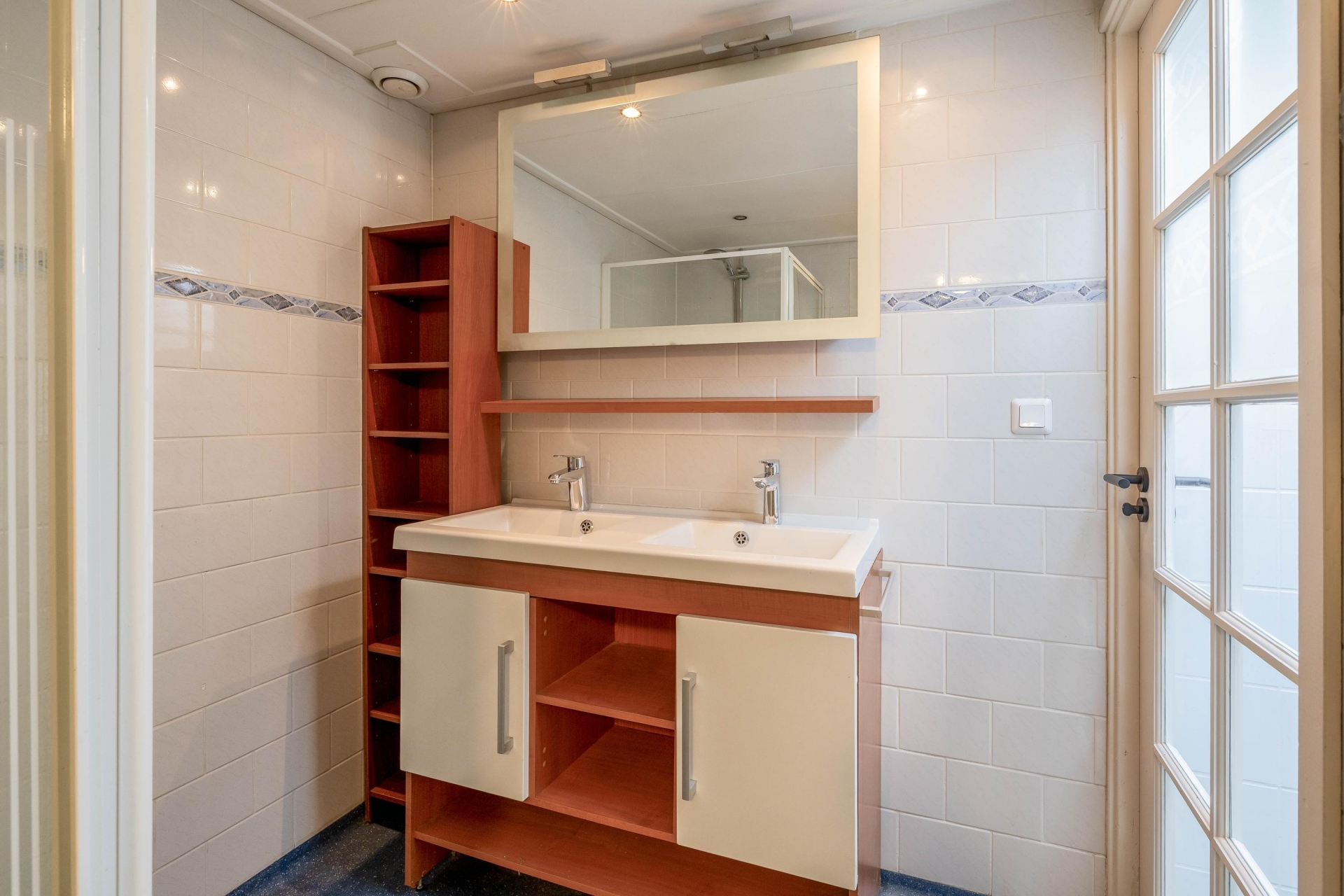 Vanuit de badkamer heb je toegang tot de inpandige berging met wasmachine- en drogeraansluiting en de opstelplaats van de C.V.-ketel. Ook bereik je hier de binnenplaats met achterom.
