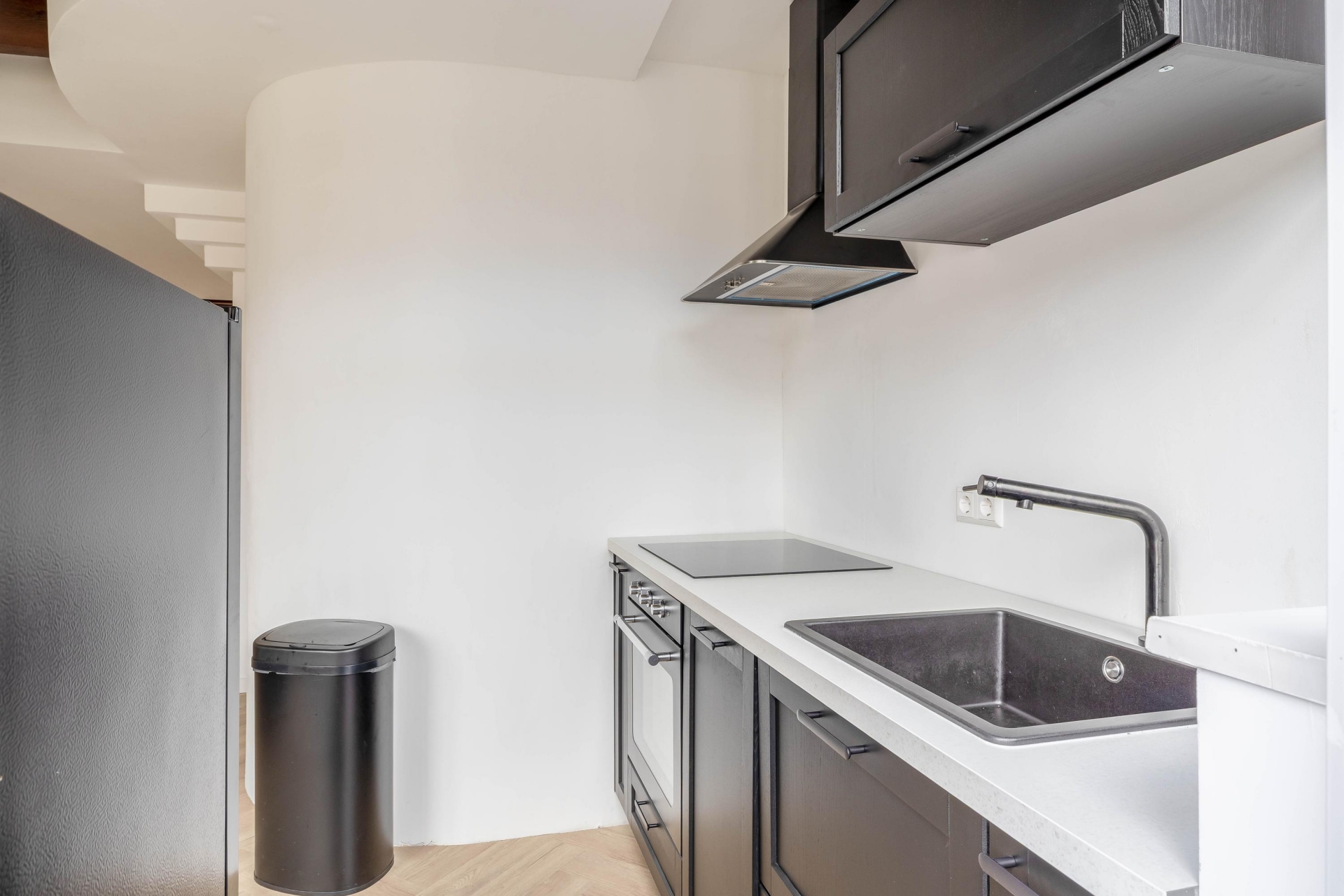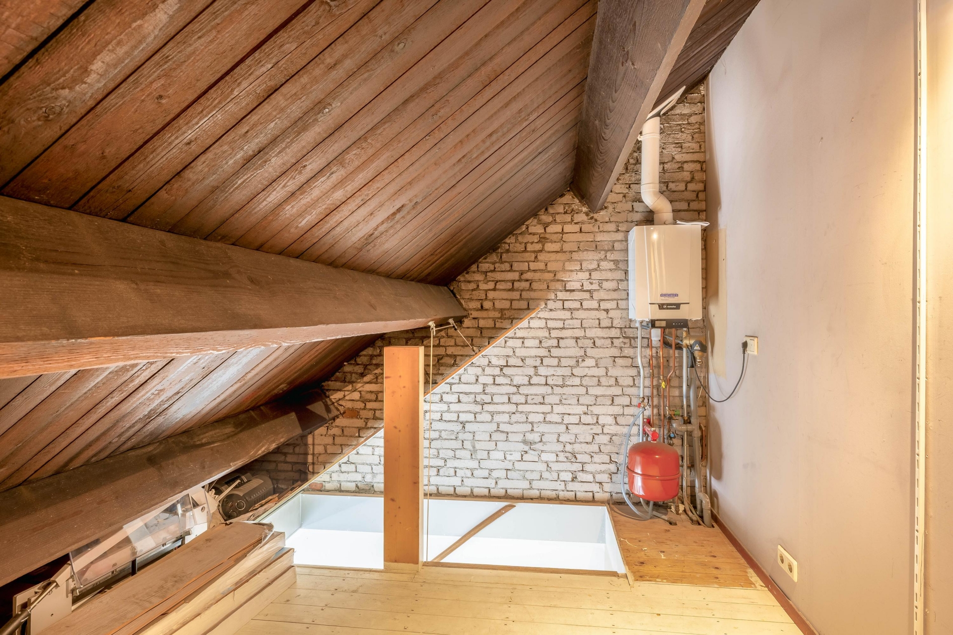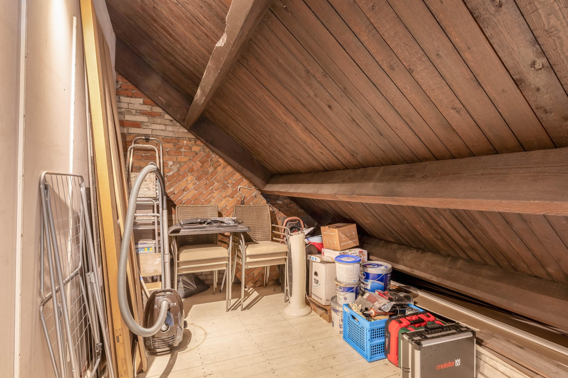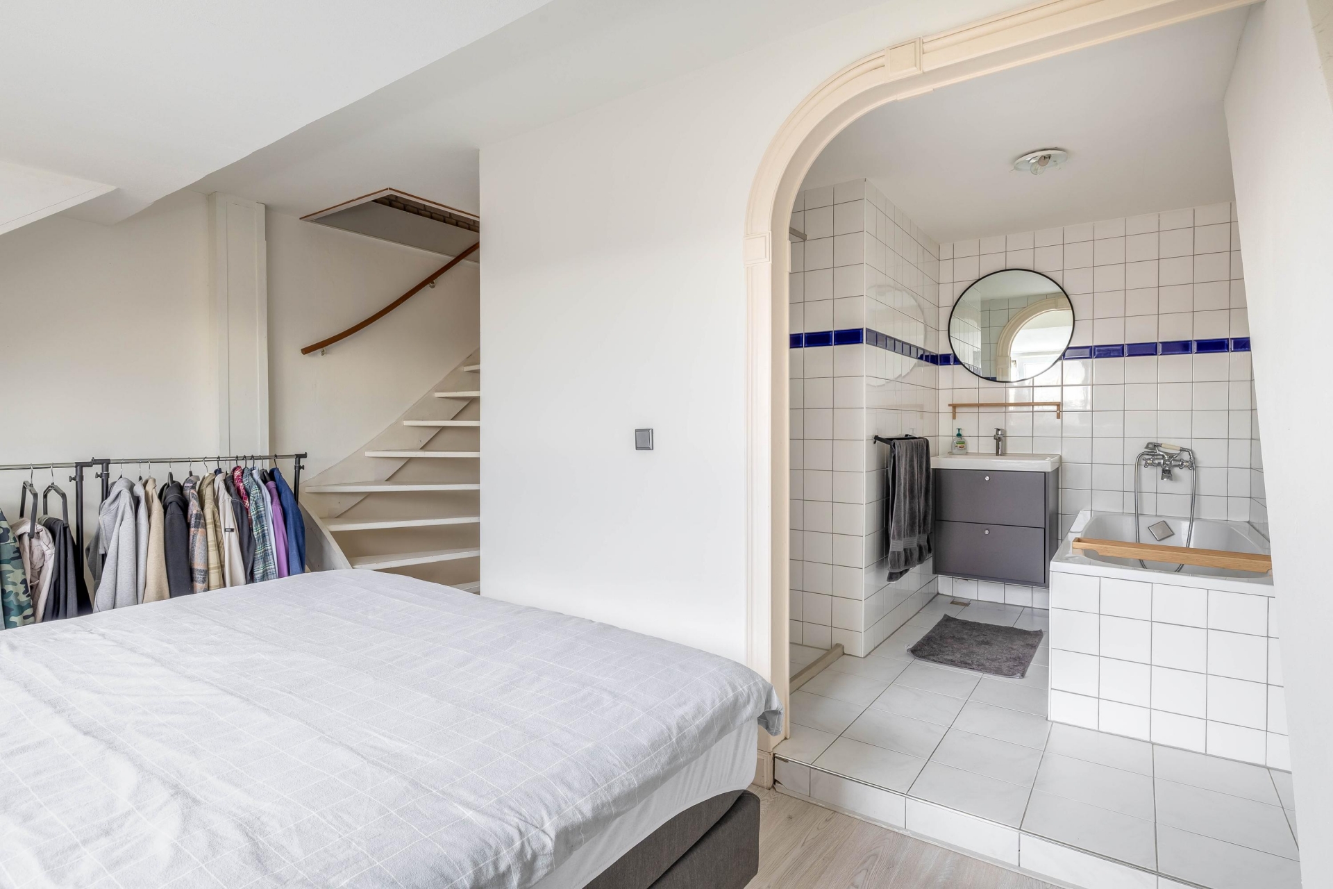 De woonkamer is een echte blikvanger: royaal van formaat, stijlvol afgewerkt en dankzij de grote raampartijen heerlijk licht. De klassieke balkenplafonds geven direct sfeer, terwijl de indeling ruimte biedt voor zowel een comfortabele zithoek als een gezellige eettafel. Door de ligging op een hoger woonniveau geniet je bovendien van een vrij uitzicht over de straat en de omliggende bebouwing. Hier ervaar je rust, terwijl je toch in een levendige stad woont.